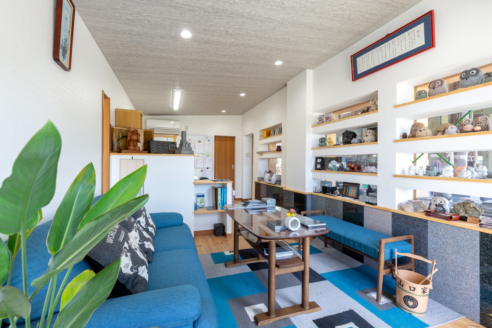 よその石屋ではない空間を作りたかったです。石屋でソファーとか置いてあるところはあまり無いですし。