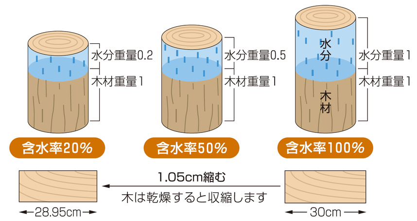そこで水分量を「含水率」として算出し、一定の基準を設けて品質の目安にしているのです。