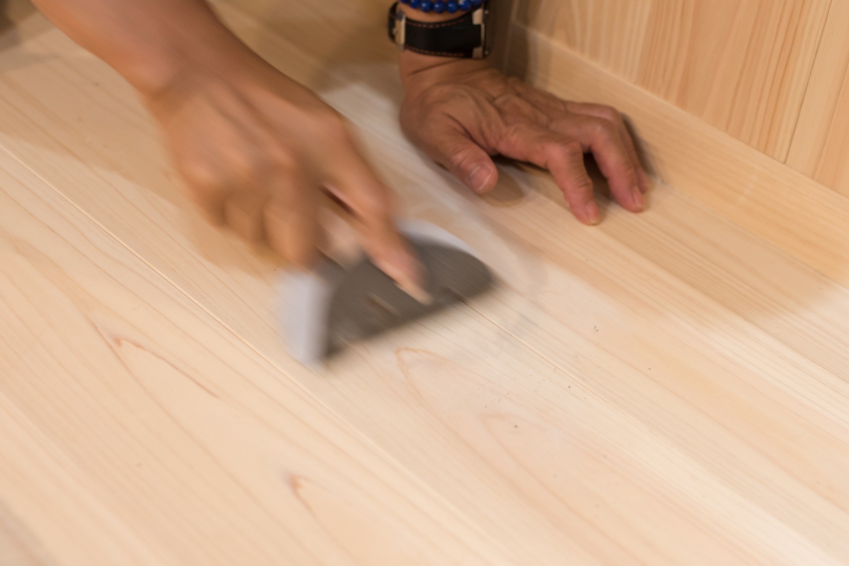 ・・・など、床の状態を見て、ペーパーやすりで こすります。